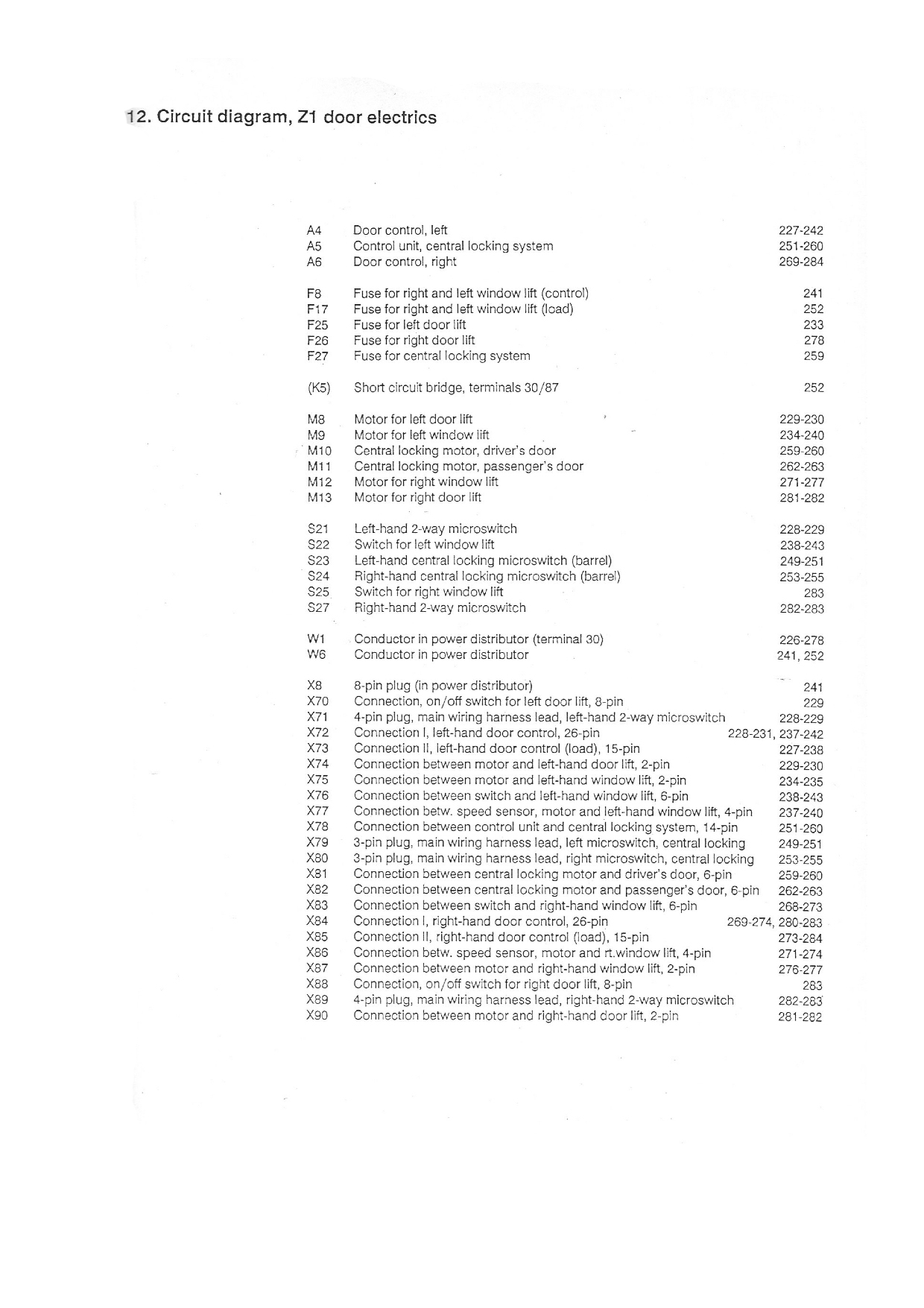 Remove the lower side panel. (see bodywork) Remove fuse 25, unlock the door by pressing the door button and push the door halfway. From inside the car, undo the 4 screws hidden under the top of the door trim working from the front of the car to the back. ( A mirror is a good help with this operation.) There is a 5th screw at the rear of the trim just at your shoulder. This is almost impossible to get at but fortunately the trim has a slotted hole on this one and will allow you to pull the trim in towards the car off the slotted hole.