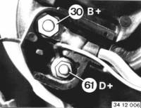 Alternator: Take off protective cap. Disconnect leads on connections B + (term. 30) and D + (term. 61).
