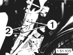 2. Unscrew screw (1) and pull out expansion rivet (2).