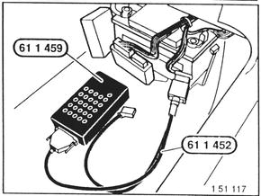 Pull 26-pin (white) plug off of control unit and connect on test box 61 1 459 using adapter lead 61 1 452.