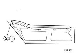 Remove middle side panel, lower the door and window. Adjust gap ! to be parallel on bolt (1).